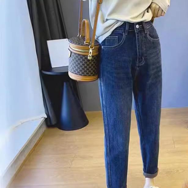 Women's Thickened Velvet Harem Jeans: Straight, Loose, Slim Fit for Autumn/Winter 2025