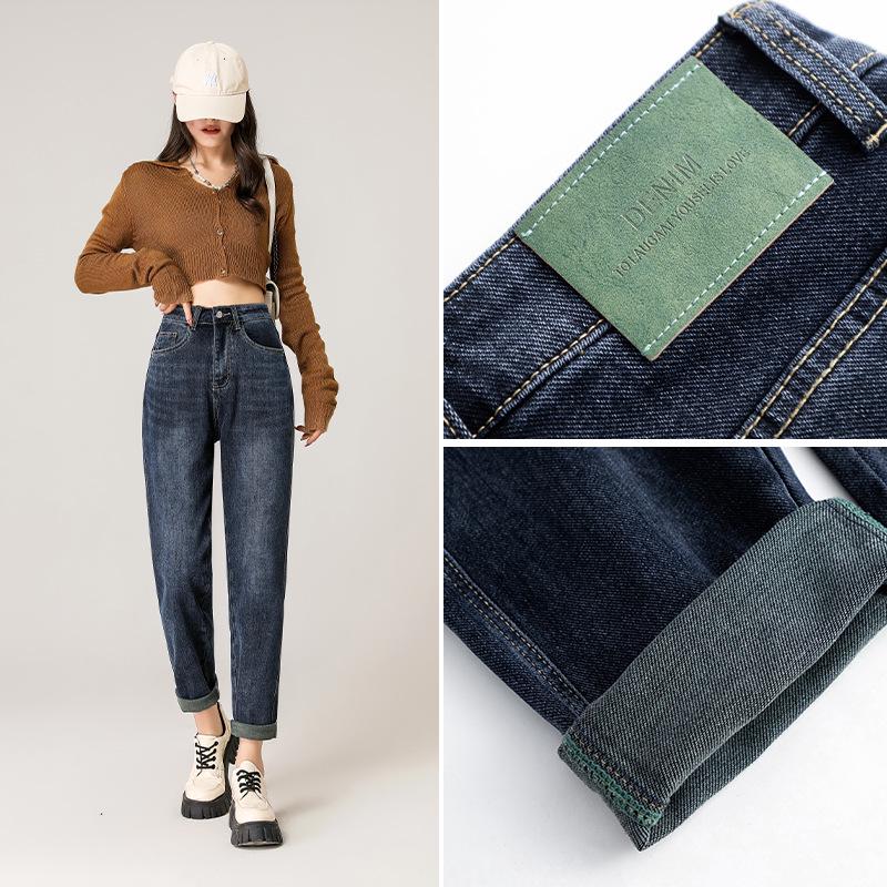 High-Waisted Fleece-Lined Stretch Harem Jeans for Women - Autumn/Winter Loose Slimming Style