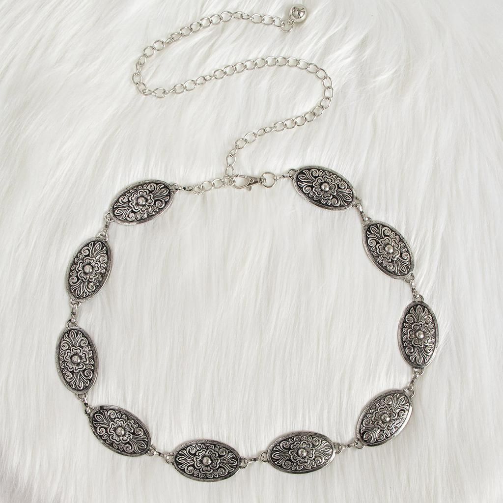 New Carved Retro Metal Women's Waist Chain Ancient Silver Bronze Western Style Embossed Alloy