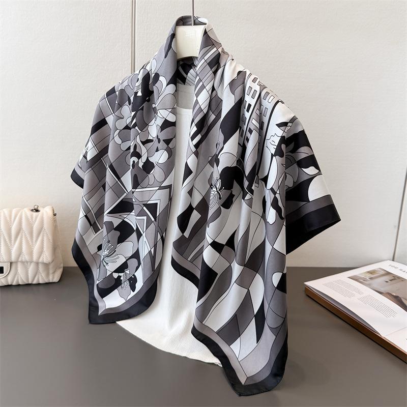 Luxury Women's Soft Satin Hair Scarves Fashion Square Geometric Printed Headscarf 90cm Professional Accessories Designer Scarf