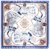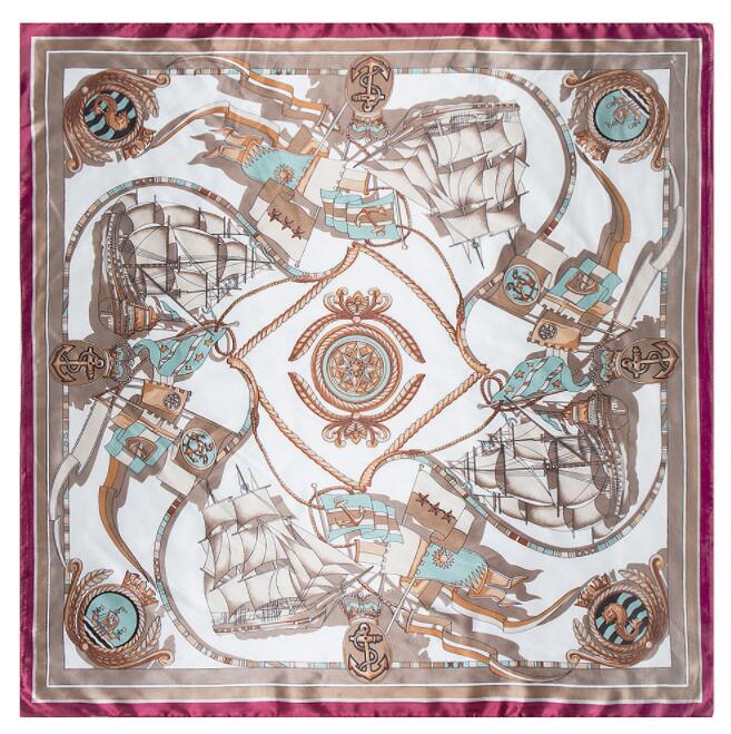 90*90cm Luxury Brand Women Silk Scarf Hand Drawing Sailing Boat Design Square Scarves Spring Summer Shawls For Ladies