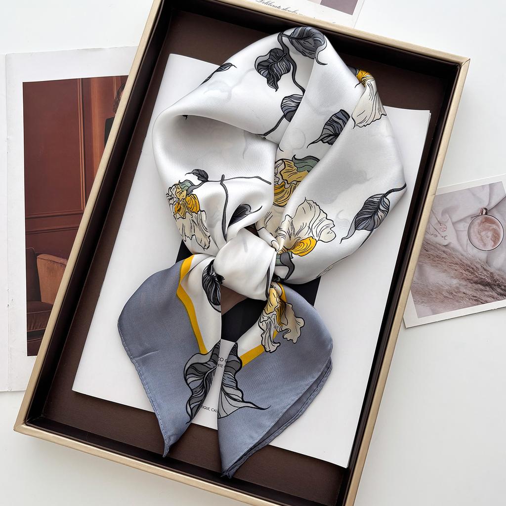Luxury Floral Silk Square Scarf Women Fashion Print Bandanas Hairband Bag Ribbon Female Neckerchief Hijab Scarf For Travel Daily