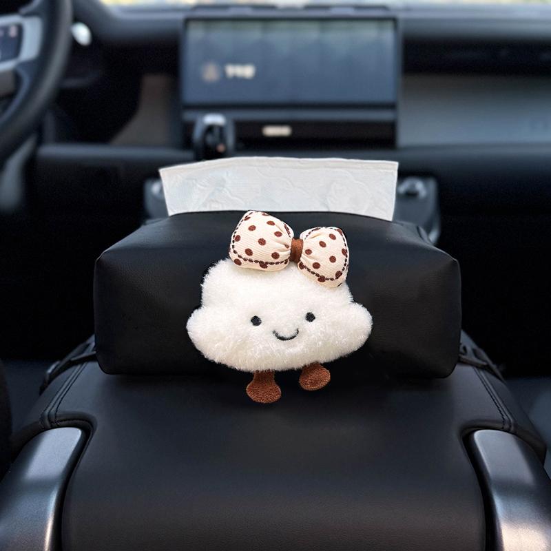 High Quality Leather Car Tissue Box For Armrest Paper Holder Cute Cartoon Bow Cloud Auto Hanging Back Seat Headrest Storage Bag