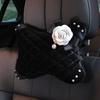Mode Weiches Plüsch Kristall Auto Nacken Kopfstütze Kissen Perle Kamelienblüte Autositz Nackenkissen Samt Kopfstützzubehör