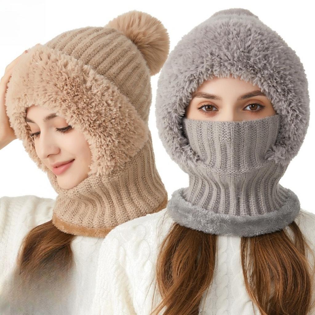 Hohe Elastizität, Einfarbig, Strickmütze, Schal, Maske, Overall, Damen, Radfahren, Winddichte Mütze, Warme Mütze