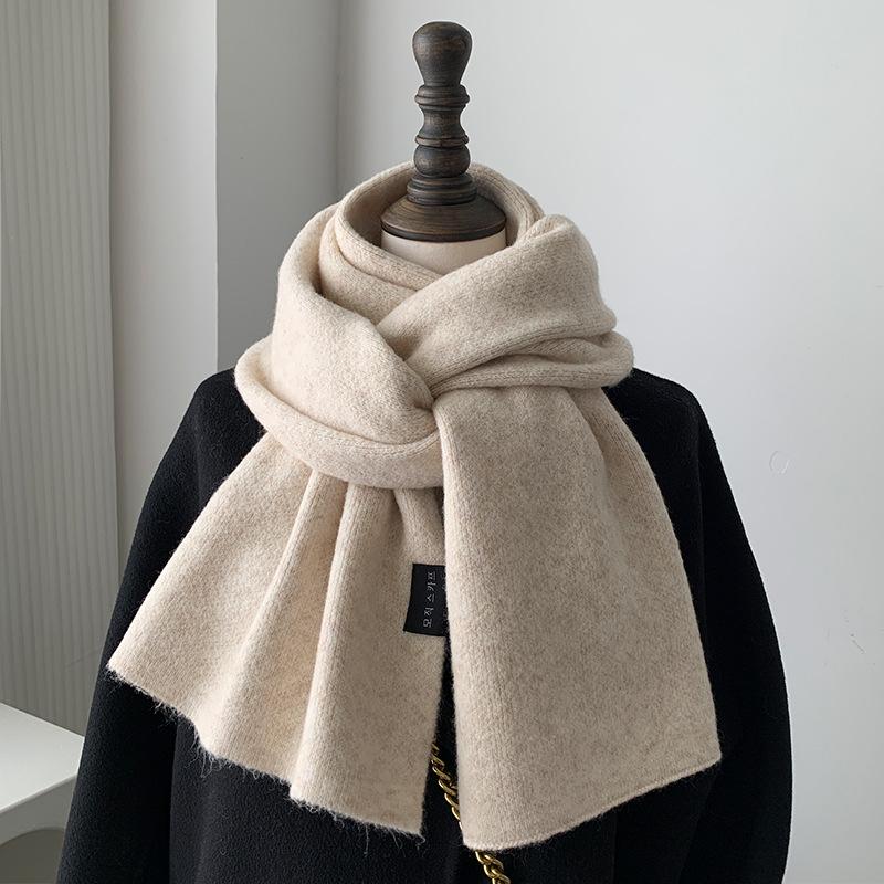 Korean Version Wool Blend Scarf Women Men Fall Winter Soft Warm OL Solid Color Muffler High-quality Thick Warm Scarf Male Female