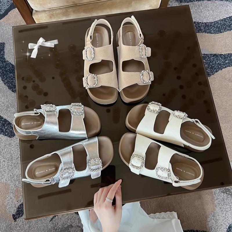 Weiche Lederversion~ 4cm erhöhte Plattform Strass Boken Sandalen Damen Sommer 2025 neu vielseitig lässige Oberbekleidung