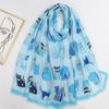Spain Lovely Cartoon Cat Pattern Fringe Viscose Scarf Lady Print Soft Shawls and Wraps Pashmina Muslim Hijab Sjaal 180*90Cm