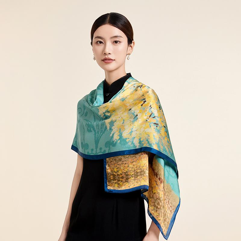 100% Real Silk Long Scarf Women Print Hangzhou Fashion Handkerchief Pure Silk Neckscarves Luxury Bufandas Silk Shawl