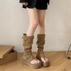 Braune Retro-Zehenpartie coole Stiefel Damen 2025 Sommer neue lange Schaft Stacking-Stiefel dicke Sohle erhöhend atmungsaktiv Westernstiefel