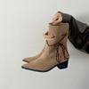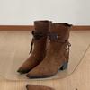 Retro vielseitige Maillard-Stil Dicke Ferse Kurze Stiefel Damen 2025 Neu Herbst mit Rock Höhenerhöhung und Dünne Spitze Stiefel