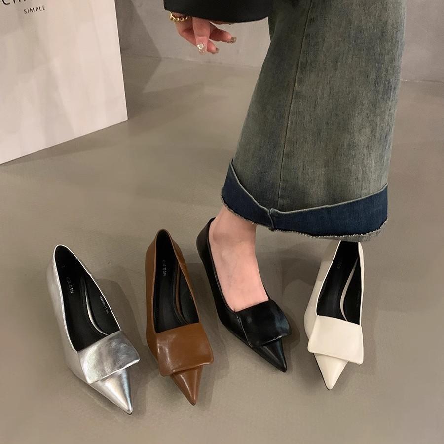 Französische Kitten-Heel-Schuhe mit leichtem Ausschnitt, Damenschuhe 2025 Frühling und Herbst neu, spitze, temperamentvolle, silberne Abendschuhe für die Arbeit