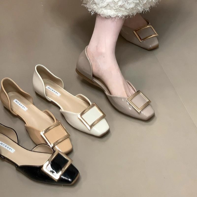 Mode quadratische Schnalle hohle flache Schuhe Damen Frühling und Herbst neu flacher Einstieg ein Pedal Mary Jane Schuhe Französische Pendlerschuhe