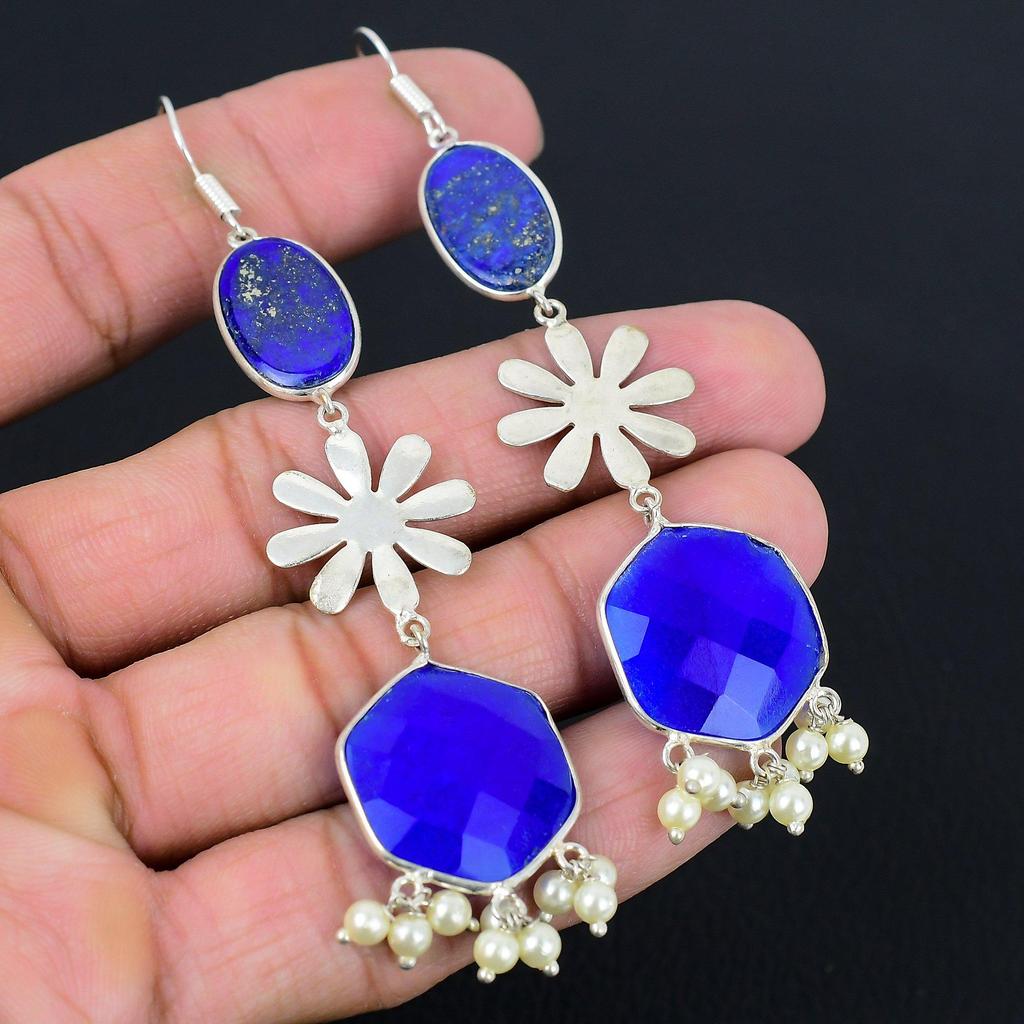 Oval Natural Lapis Lazuli Sterling Silver Wife Drop Dangle Hook Earrings Jewelry
