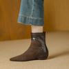 Damen Herbst- und Winter-Neuheit, spitze kurze Stiefel mit Innenkeilabsatz, Wildleder-Spleiß, Retro, vielseitig, bequem, zum Pendeln, schlichte, schlankmachende Stiefel