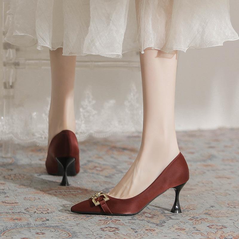 Burgunderrote spitze High Heels 2025 neu Frühling und Herbst Retro-Stil modisch und bequem vielseitig Pendler Einzel Schuhe Damen