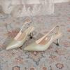 Baotou hinten leer flache Sandalen Damen 2025 Sommer neu dünner Absatz vielseitig und bequem täglich pendeln Temperament High Heels