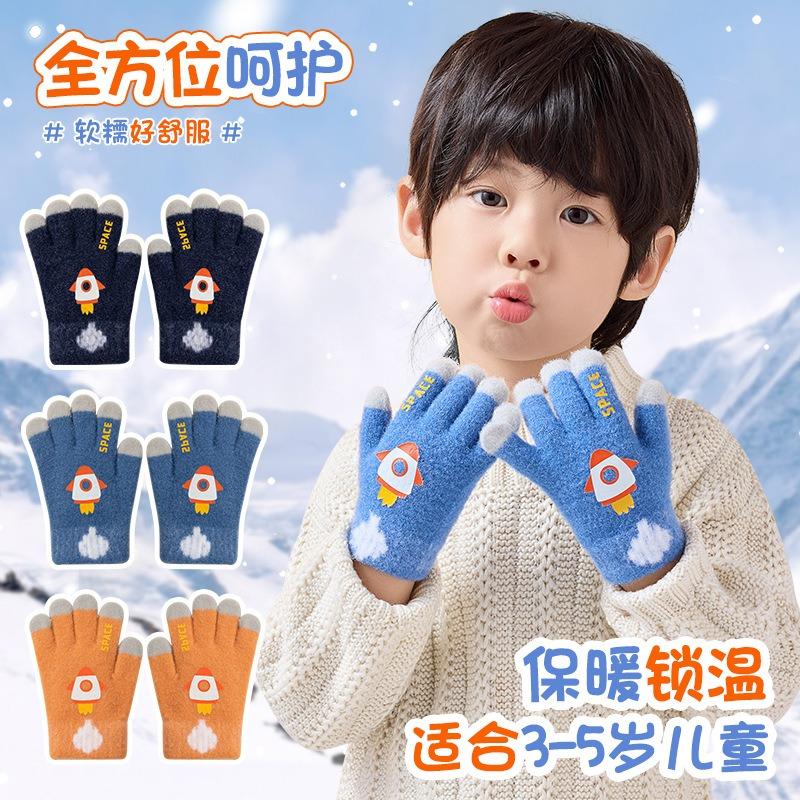 Herbst- und Winterrakete warme Kinderhandschuhe Baby Grundschüler niedliche gestrickte Wolle Fünffinger Cartoon Jungenhandschuhe