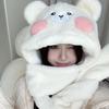 Hat female winter cute Pacha puppy plush thickened scarf gloves integrated hooded warm scarf three-piece set