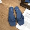 Frühling 2025 neue flache, coole Hausschuhe mit quadratischer Spitze im Feenstil mit Rockband, Zehenbedeckung, silberne Sandalen, Damenschuhe