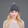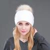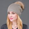Herbst- & Winter Damen Strickmütze aus Wolle mit Waschbärfell-Bommel - Stilvoll, warm, Pullover-Design.