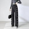 Damenjeans im Hongkong-Stil mit Liebesherz, hoher Taille, geradem Bein - Schick locker, weites Bein, fließend, bodenlang, schlankmachend.