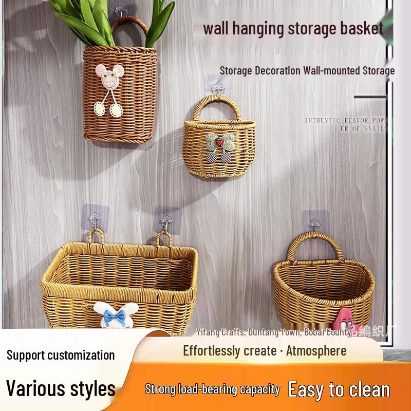 Wall-Mounted Rattan-Style Storage Rack for Kitchen & Bathroom