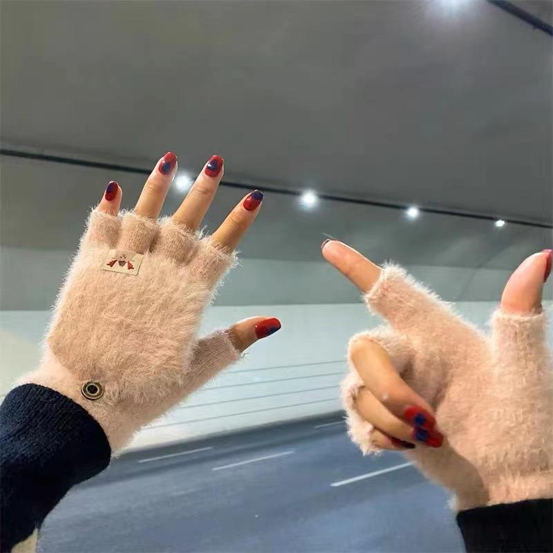 Halbfinger-Flip-Handschuhe Winter Wolle gestrickte Handschuhe Touchscreen verdickt warm und kältebeständig Schüler Reiten weiblich Winter Finger