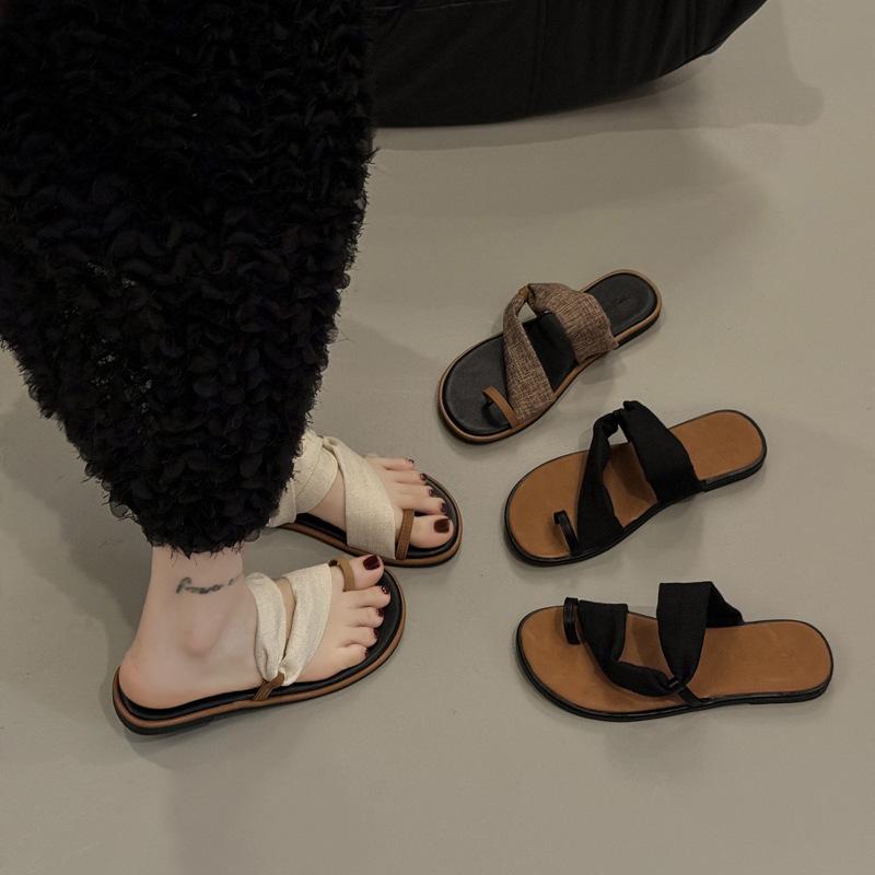 Französische Nische Zehentrenner Damen Sommer 2025 neu Außenmode Designgefühl flacher Boden offene Zehen Strand coole Hausschuhe