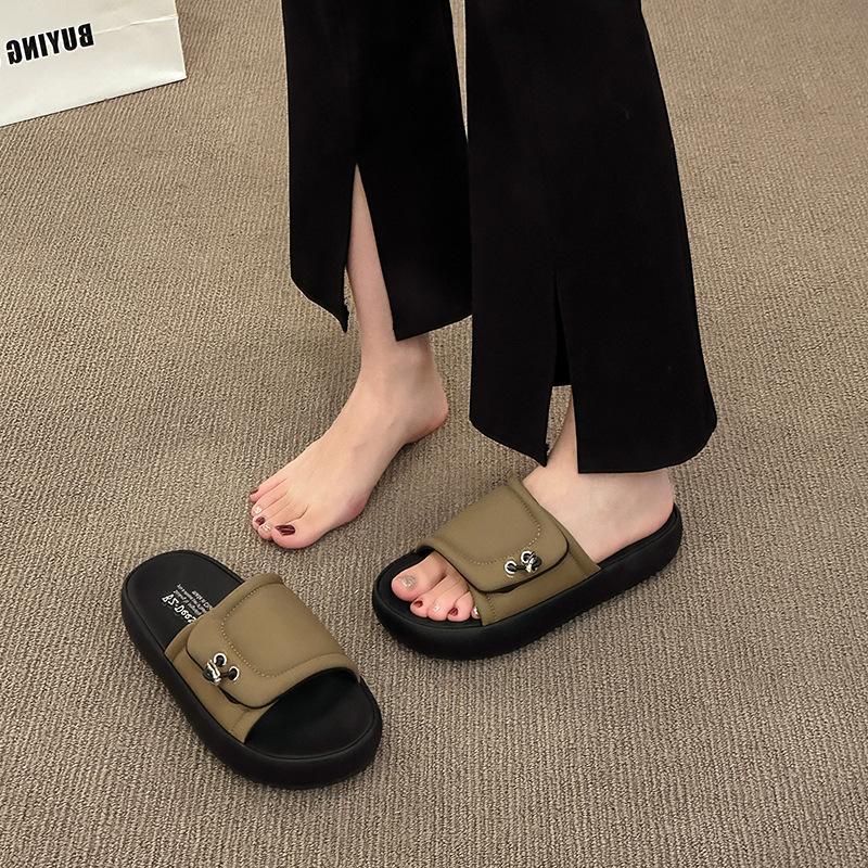 High-End Xiaoxiangfeng Ein-Wort-Slipper für Damen 2025 Sommer Dicksohlige Außenbekleidung Klettverschluss Lässige Weichsohlen-Strandsandalen