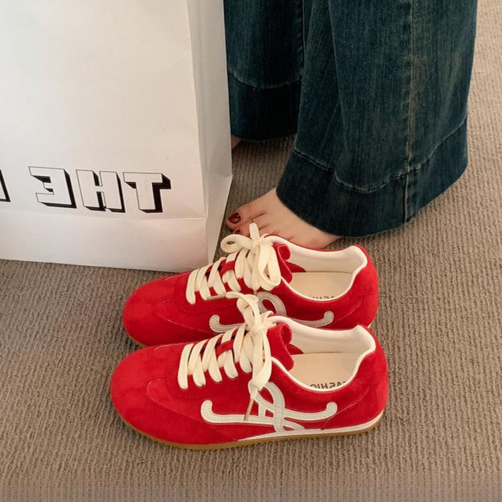 Rote deutsche Trainingsschuhe Damen 2025 neue Frühling Flache Schuhe Lässige Sportschuhe Leicht und nicht ermüdend Forrest Gump Schuhe Damen