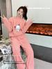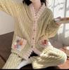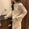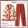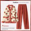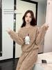Damen Dickes Flanell Korallenfleece Pyjama Set - Niedlicher Langer Cardigan Homewear für Herbst und Winter