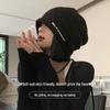 Trendige koreanische Slouchy Beanie für Damen und Herren - Dünn, gestrickt, jugendliche Mode mit Applikationsdesign.