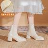 Leder Dicke Ferse High Heel Stiefel Damen Herbst und Winter Samt Neue Dünne Stiefel mit Rock Weiß Kurze Stiefel