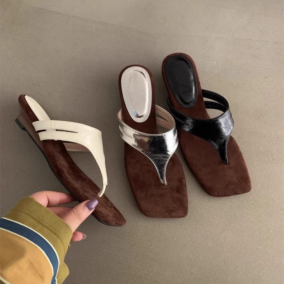 Design-Sinn Nischen-Keilabsatz silberne Zehensandalen Hausschuhe Damenschuhe tragen Sommer hochhackige Sandalen Römerschuhe