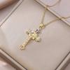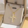 Damen Bunte Zirkon Kreuz Halskette - Nischendesign mit Voll-Diamant-Anhänger an Edelstahlkette