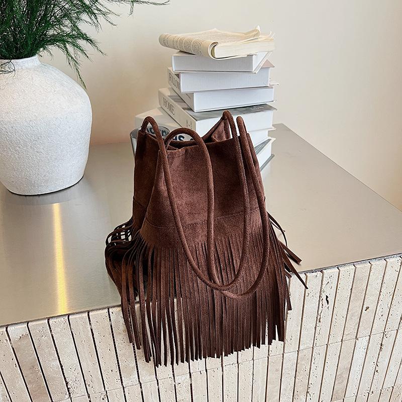 Herbst und Winter Retro Matte Tasche Damen Lässige Vielseitige Umhängetasche Böhmische Fransen-Tasche