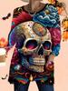 2025 Herbst Winter Neue Übergröße Damen Tops, Halloween 3D-Druck Mode Rundhals Langarm T-Shirts