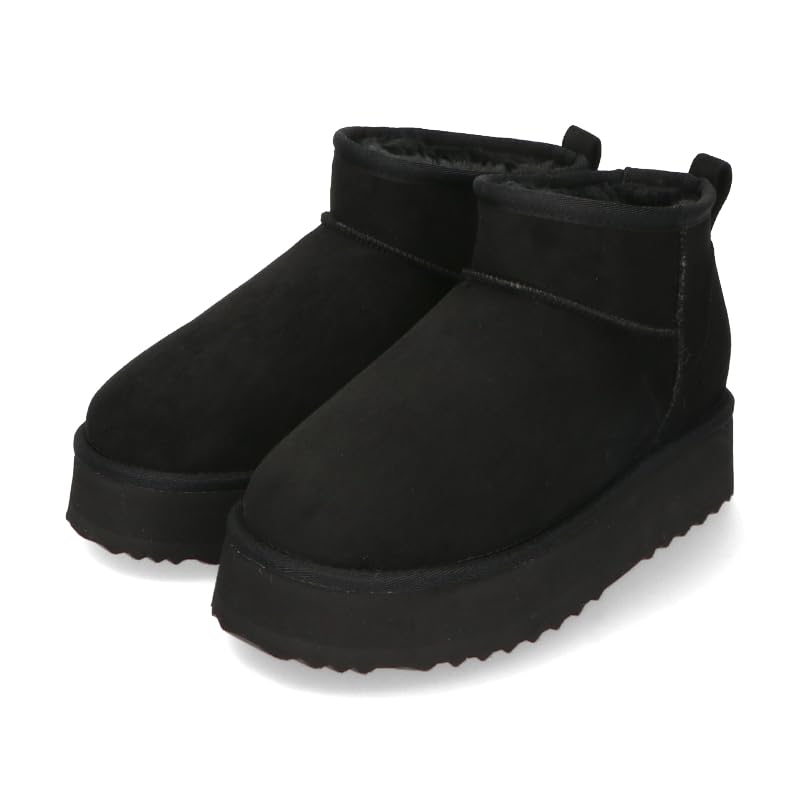 Oriental Traffic Fashion Short Sheepskin Boots with Thick Soles and Warm and Size cm Boots, Fur, Lightweight, Black, 25.0-25.5