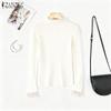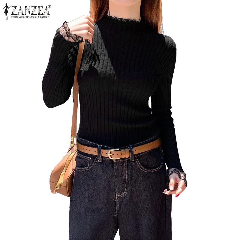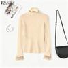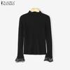 ZANZEA Damen-Pullover mit Stehkragen, langen Ärmeln, Spitzen-Patchwork-Stretch-Rippstrick, Unterhemden