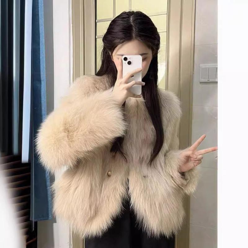 Imitation mink fleece jacket women's autumn and winter clothing, imitation fox fur, cotton-padded thickened short long hair