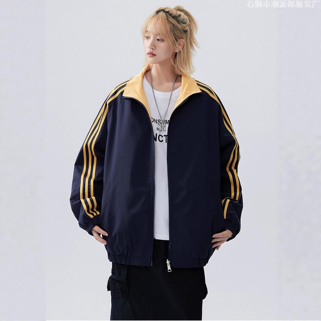 Doppelseitige Jacke Jacke für Herren und Damen Herbst Neu Koreanische Kleidung Gestreifter Clip