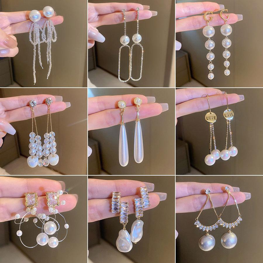 Silver Needle Pearl Geometric Fringed Earrings French Design High-end Stud Earrings Light Luxury Xiaohongshu Same Earrings