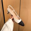 937-2 Französische Retro-Farbblock-Sandalen mit dicken Absätzen und leeren quadratischen Zehenpartien, Damenschuhe mit kleinem, duftendem Temperament