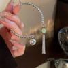 Einfacher Grüner Armreif Quaste Doppelter Zauber Silber Öffnung Verstellbares Armband Für Frauen Vintage Schmuck Geschenke