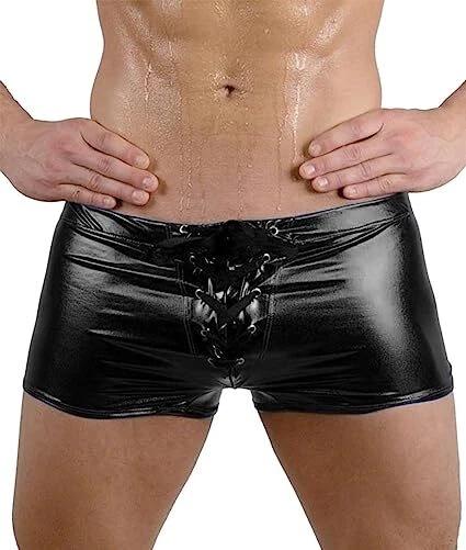 Sexy Herren Designer Leder Shorts Boxer Echt Echtes Stilvolles Schafsleder Schwarz