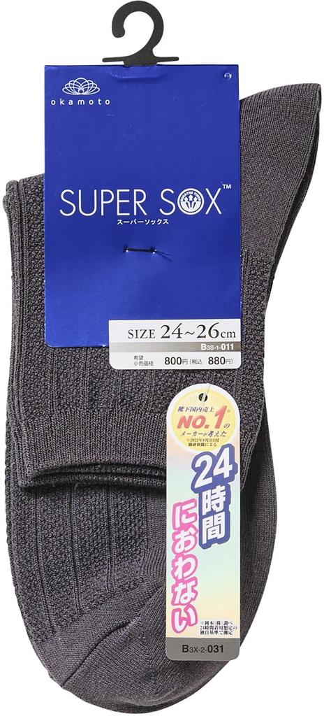 Okamoto SUPER SOX Kurz Deodorierendes Produktnummer 496800 (Super Socken), 24-Stunden geruchsfrei, Länge, 14cm, Socken,