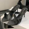 Mode Sexy Transparente PVC Überkreuzte High Heel Pantoletten Damen Mode Spitzschuh Pfennigabsatz Slide Sandalen Elegante Bankettkleid Schuhe