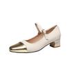 Mode eckige Zehenpartie Goldleder Patchwork mittelhohe Absätze Schuhe Frau dicker Absatz Knöchelriemen Pumps bequem Mary Janes Schuhe für Frau