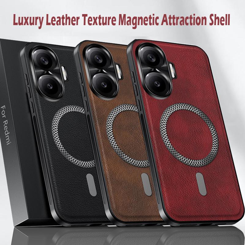Luxuriöse PU-Lederhülle für Xiaomi Redmi Turbo 4 Pro Redmi Turbo 3 Magsafe Magnetischer Metallring Linsenschutz Stoßfeste Hülle